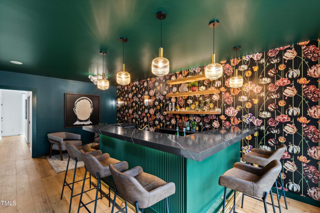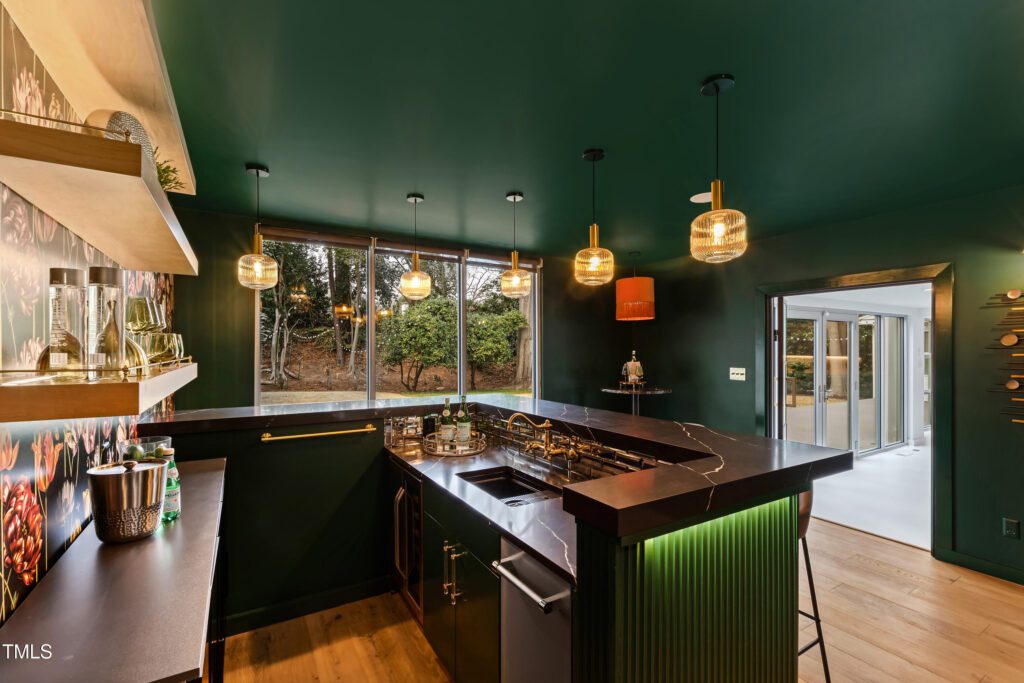 One of this home’s most distinctive features is its speakeasy-inspired hosting space—a refined room that blends vintage charm with modern sophistication. Whether you’re crafting craft cocktails for friends, curating a collection of rare spirits, or simply enjoying a quiet escape, this versatile space sets the stage for unforgettable evenings.